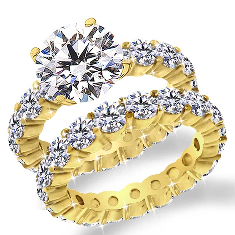 3.00 Total Carats of Diamonds all over the ring and band together. Also available in bigger stones: 4 Ct or 6 Ct with different pricing.