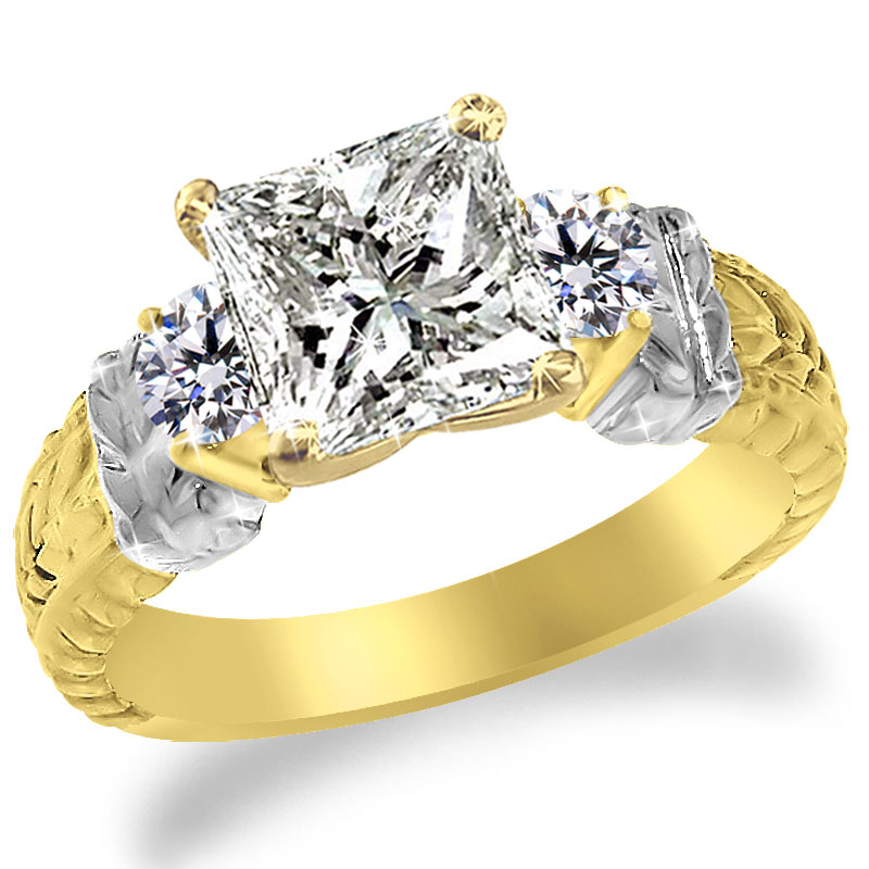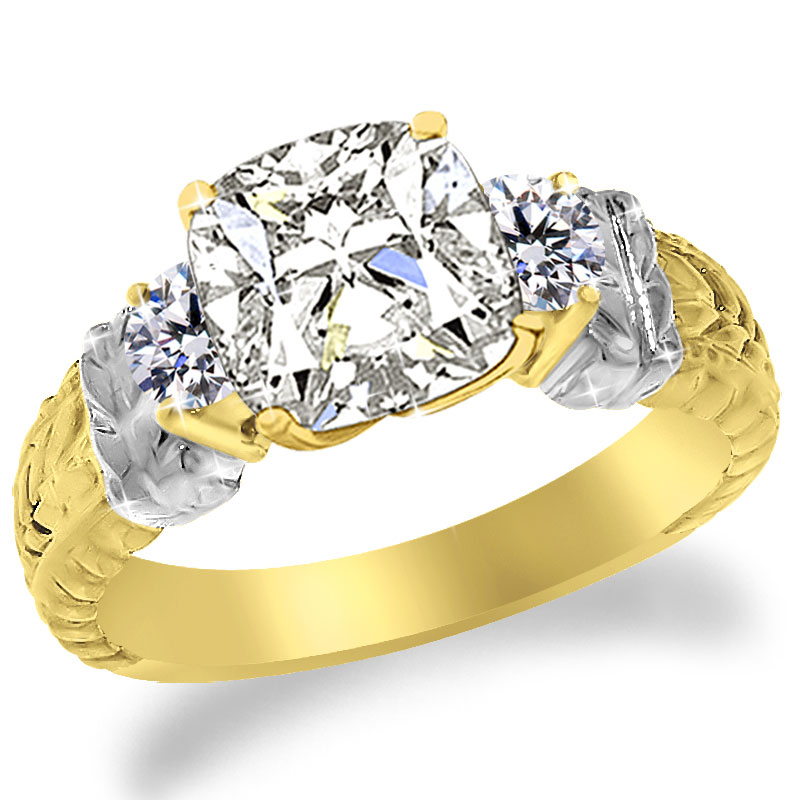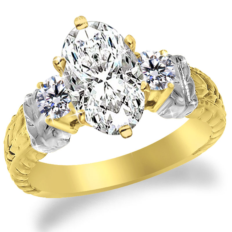 With 2 round Diamonds as sidestones 0.30 tcw and with hand craft design.