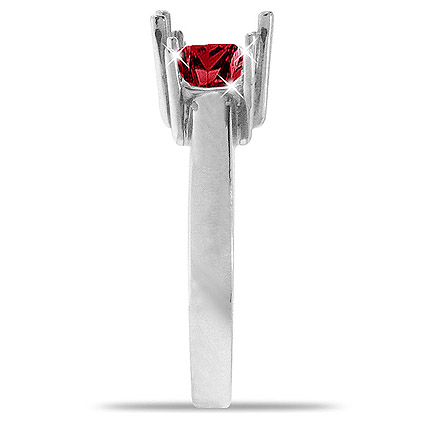 Platinum setting with 2 emerald-cut Ruby sidestones tcw 0.90 in four prong basket setting.