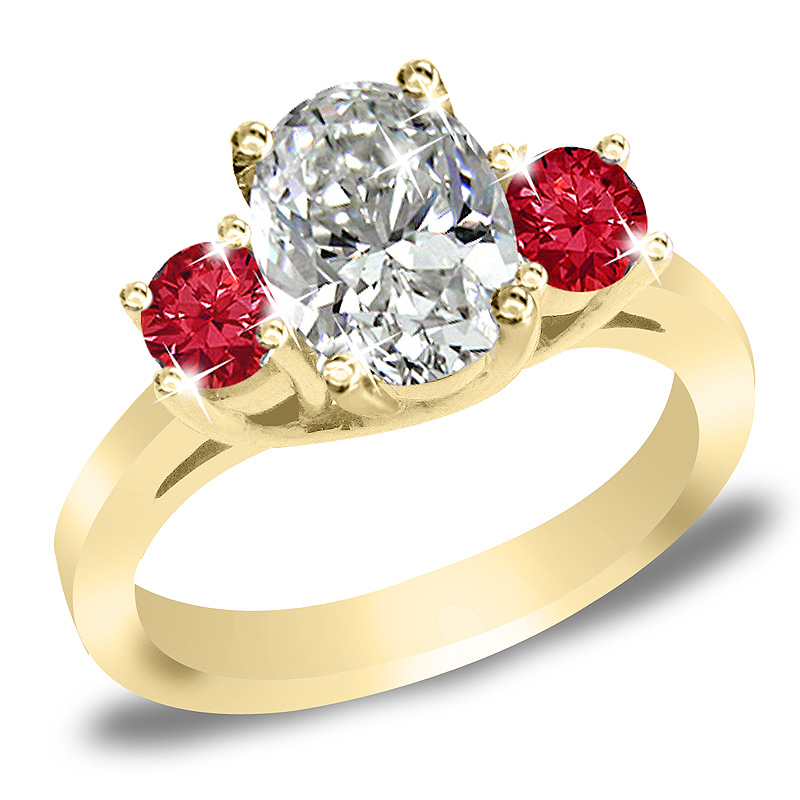 with 2 round cut Rubies 0.50 tcw as side stones and in Lucida Prong design.