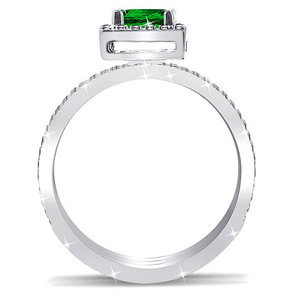 1 Carat center Emerald. This ring consist of 2 Row Center Ring and 2 single removable row bands. All Diamonds total to 1.75 Carats.