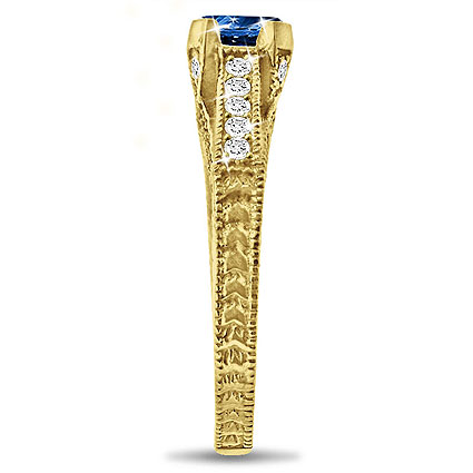 Prong setting for your center stone. Sapphire Center stone weighs 1 Carat.The ring is surrounded by pave set accent Diamonds totaling 0.50 Carats.