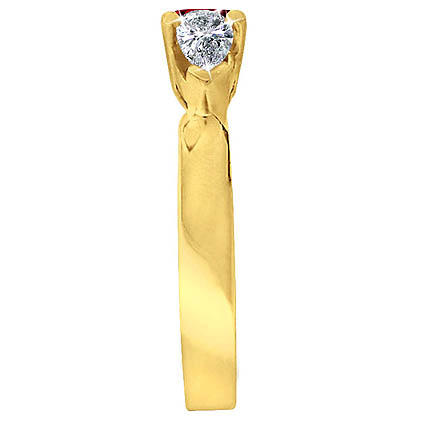 Basket prong ring with 1.25 Ct Emerald shape Ruby and Pear Cut Diamonds
