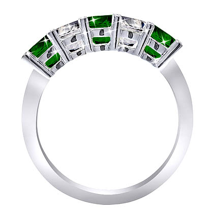 Basket Setting Diamond and Emerald Wedding band in 14K gold.