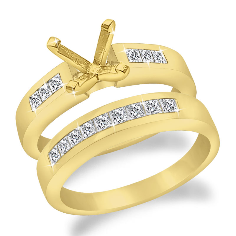 14K Gold Ring accented by princess cut Diamonds 0.75 carats total.