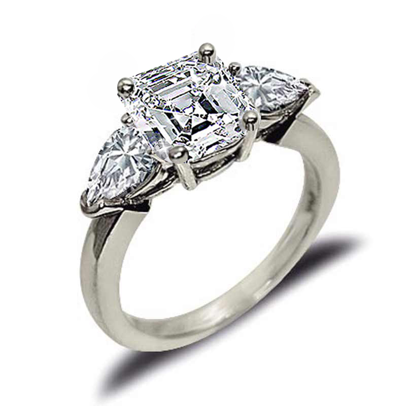 A Round Princess Asccher or Cushion Cut diamond fits the center with 2 Pear Shape Cut diamonds for the sides 0.50 tcw.