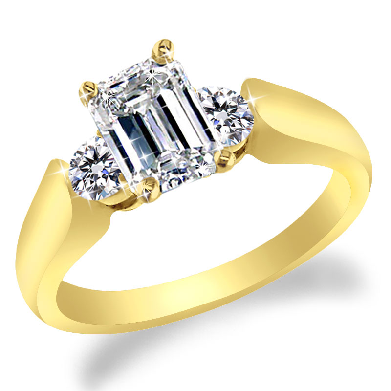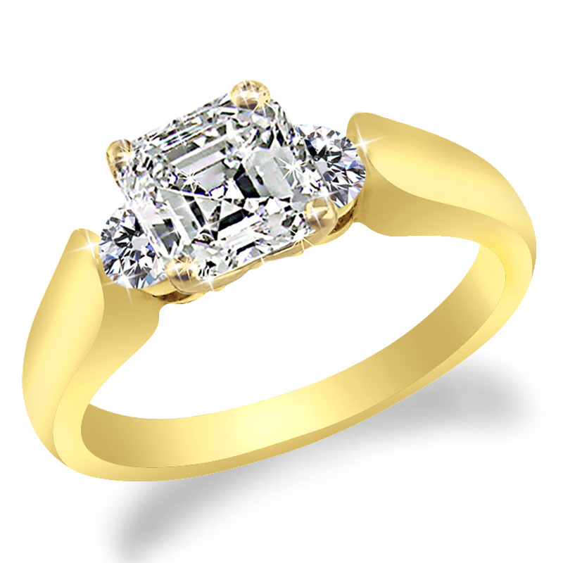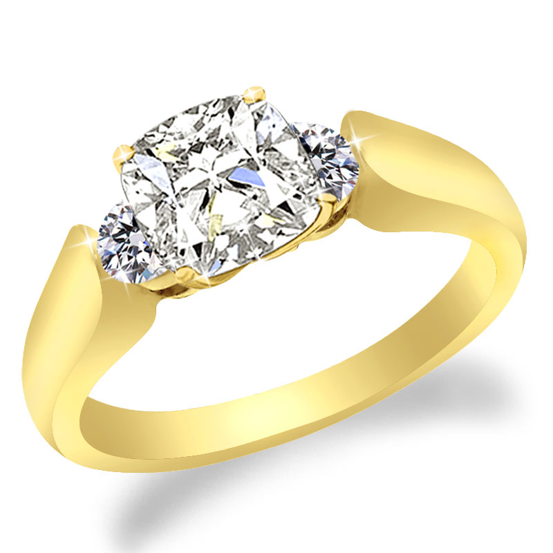 With 2 round Diamonds as side stones 0.30 tcw. Any shape and carat size of center Diamond can be placed. Choose your prong style.