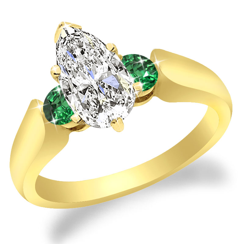 With 2 round Emerald as side stones 0.30 tcw. Any shape and carat size of center Diamond can be placed. Choose your prong style.