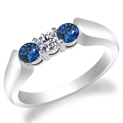 With 2 Sapphire 0.30 tcw and 1 Diamond 0.15 Ct in 14K gold common prong setting.