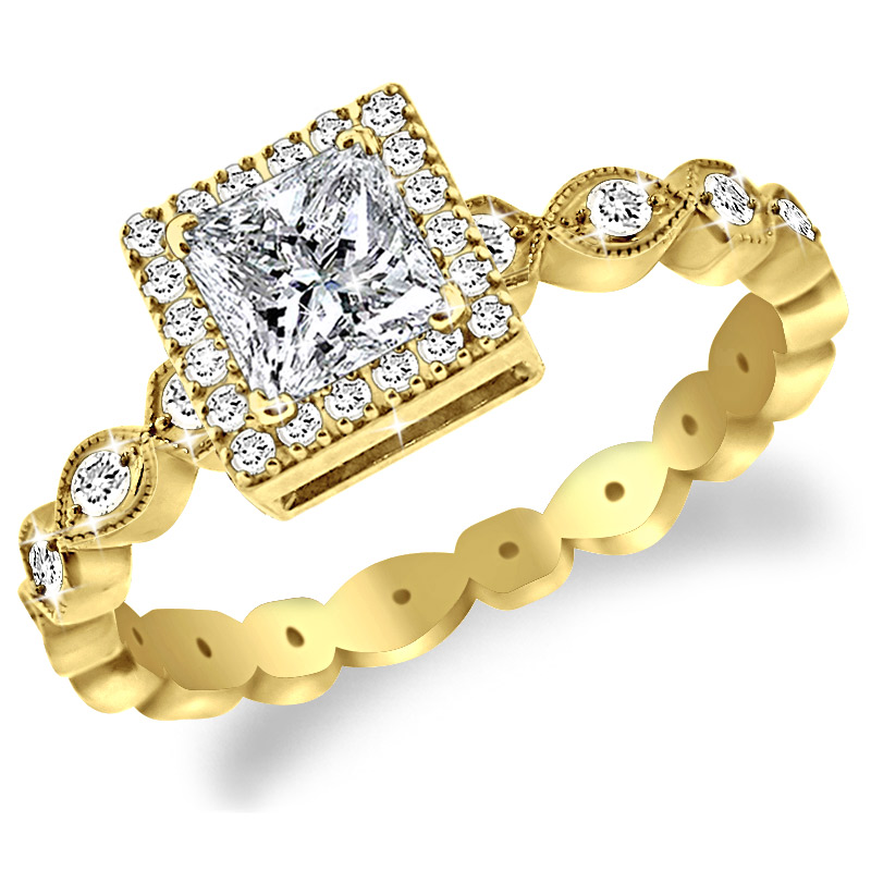 Round Diamonds totals to 0.70 Carats. You can choose head shape (Round or Square) depending on your center stone: Asscher, Cushion, Princess or Round.