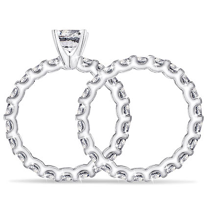2 Total Carats of Diamonds all over both ring and band. Diamonds set in common prong.