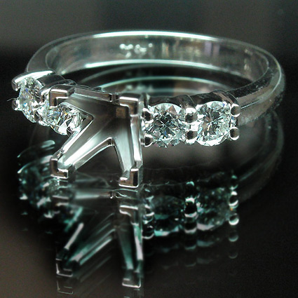 4 Diamonds total to 0.60 tcw set in common Prong.