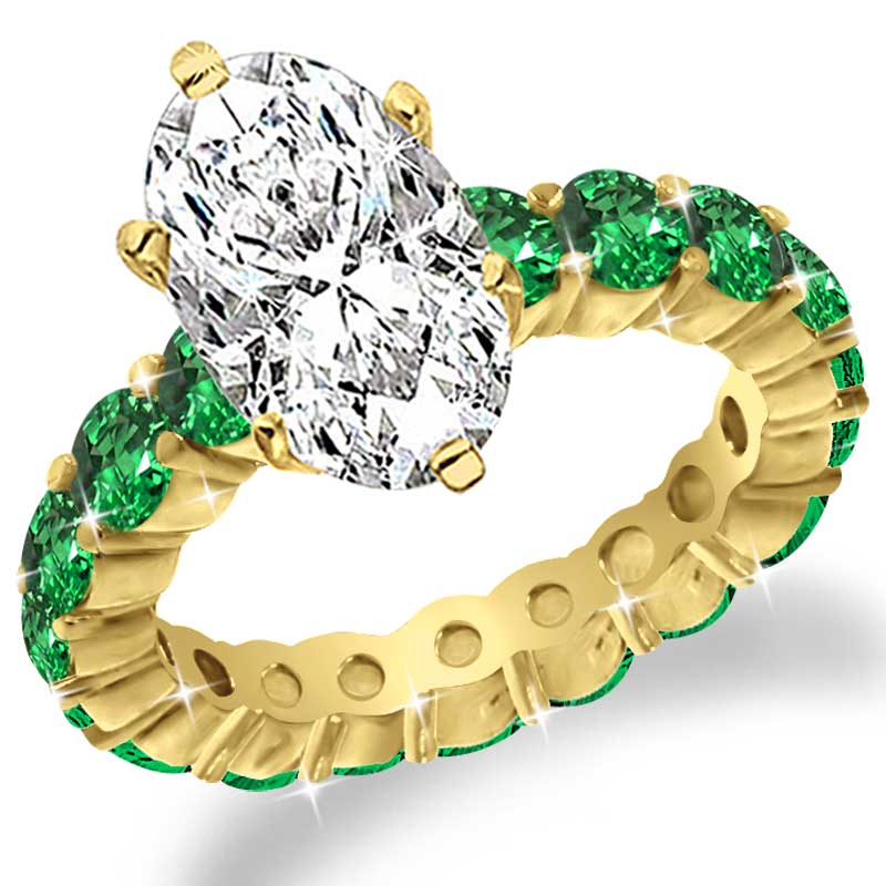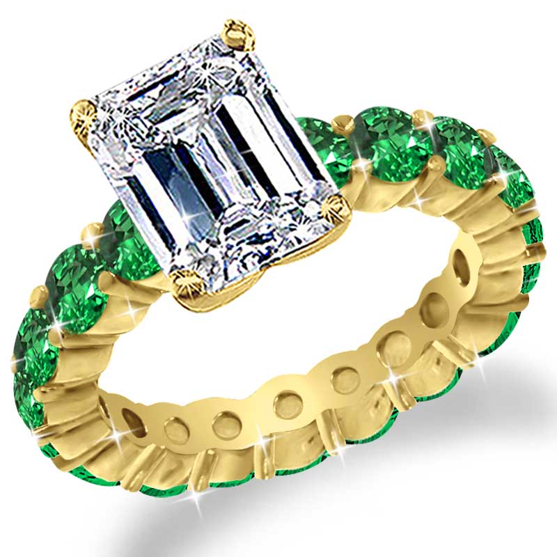 2.00 Total Carats of Emerald all over the ring. Emerald can be changed to Sapphire or Ruby.