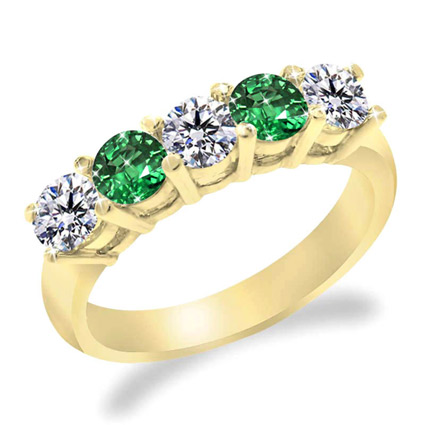 With alternate 3 round Diamonds 0.45 tcw and 2 round Emeralds 0.30 tcw.