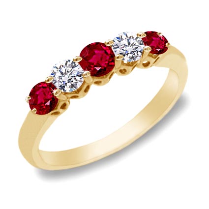 Five Stone Wedding Anniversary Band with Alternate 2 round Diamonds 0.30 tcw and 3 round Rubies 0.60 tcw.