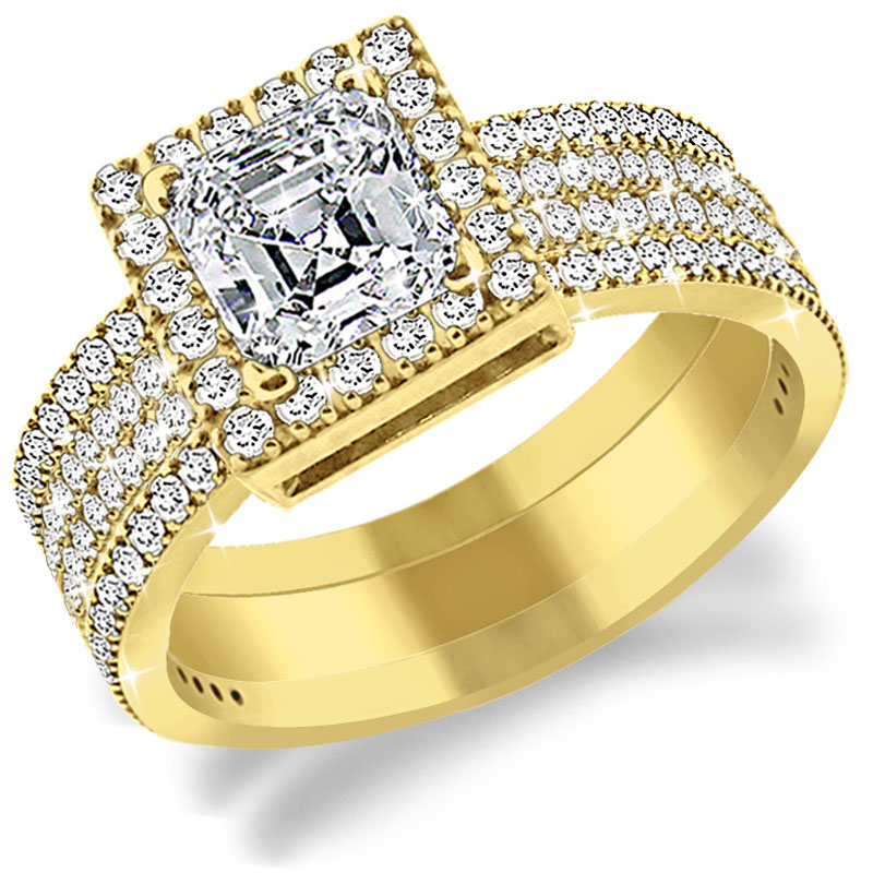 Consist of 1 two-row ring and 2 bands. All Diamonds are 1.75 Carats. We have different head shape for most cut of your Center Stone.