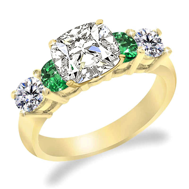 this wedding ring has 2 Diamonds at 0.30 total carat weight and 2 Emerald gems at 0.30 total carat weight.
