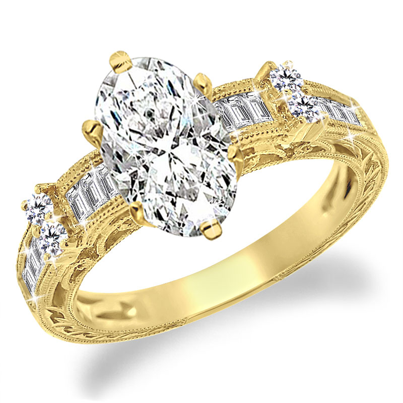 With 4pcs Round Brilliant Diamond Side Stones, 2 on each sides and 22 pcs Baguette Diamond Accent Stones