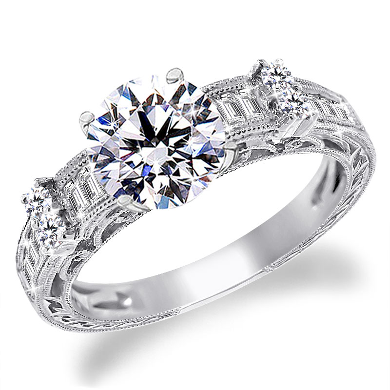 With 4pcs Round Brilliant Diamond Side Stones, 2 on each sides and 22 pcs Baguette Diamond Accent Stones