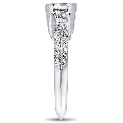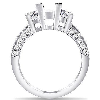Platinum Setting for 3 Stone Ring with 2 Princess side stones 0.65 tcw and 20 accent brilliants on shank 0.20 tcw.