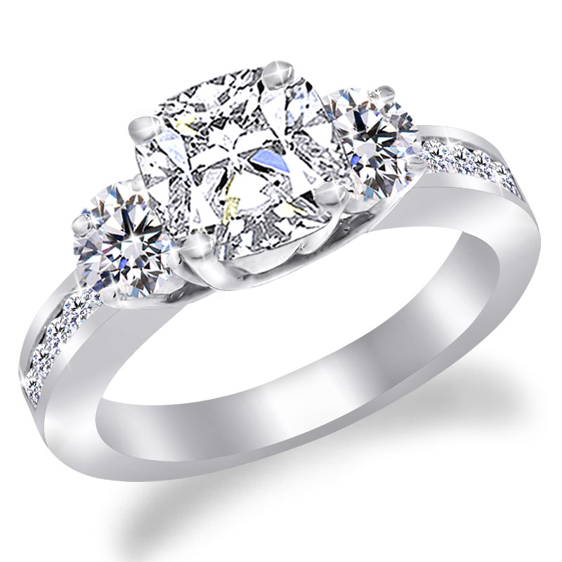 2 Round side Diamonds are 0.50 tcw. Platinum setting for Round Princess Asscher or Cushion center stone.