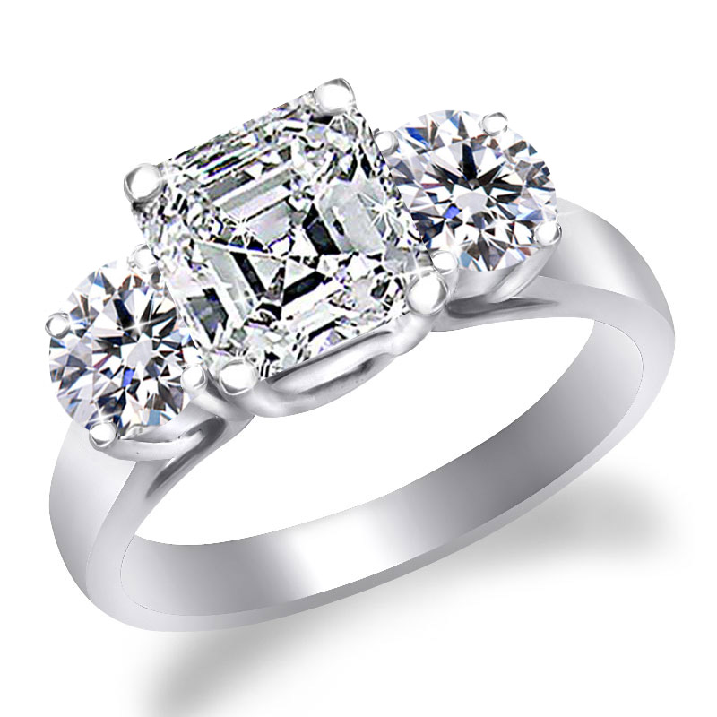 Round Asscher Princess or Cushion Cut Diamond fits the center with 2 Round Cut Diamonds as side stones tcw 0.65.
