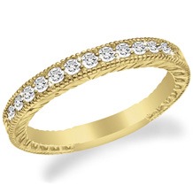 Prong setting for your center stone. The ring and band is surrounded by pave set accent Diamonds totaling 0.65 Carats.