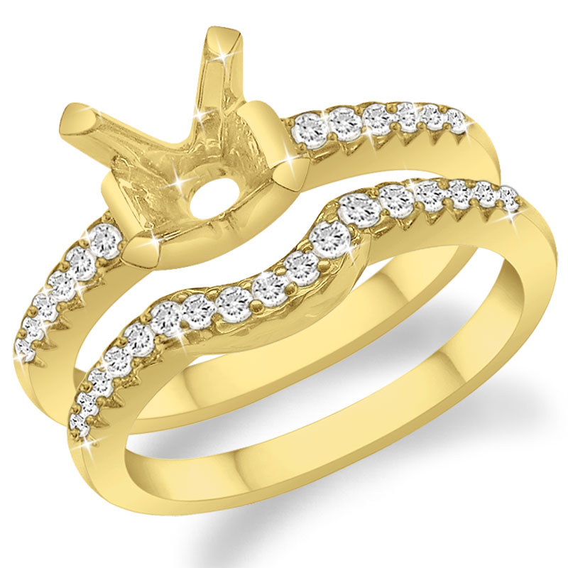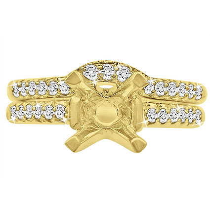 14K Gold Four prong ring setting accented with Pave set Diamonds on Shanks totaling 0.18 Carats and band has 0.26 carats.