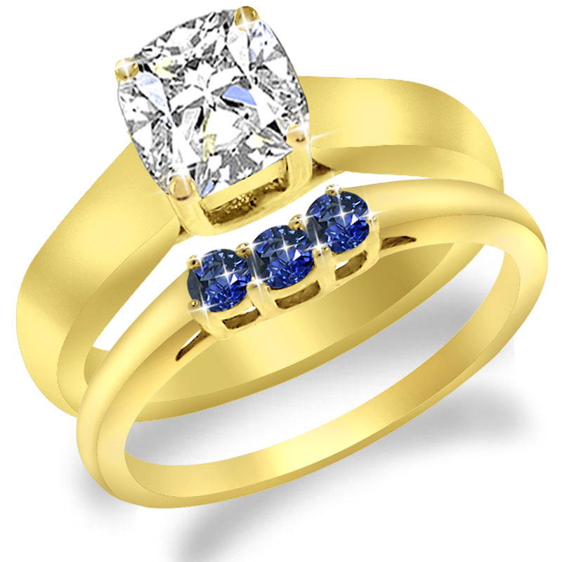 Matching Gold Ring Set: Solitaire Lucida Engagement Ring Setting with Sapphires Curved Band