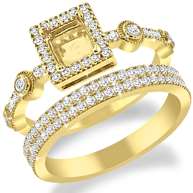 Choose from square or round top depending on the center stone you want. Diamonds on Both totals to 1.05 Carats.