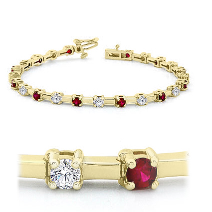Elegant looking 14K gold bracelet with 12 diamond stones 1.50 Carats and 12 ruby stones 3 Carats.