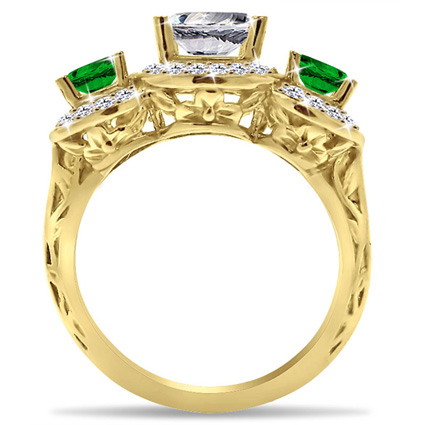 Center is 1 Carat Oval Diamond and Two side stones are Natural Emerald gemstones 0.70 tcw.