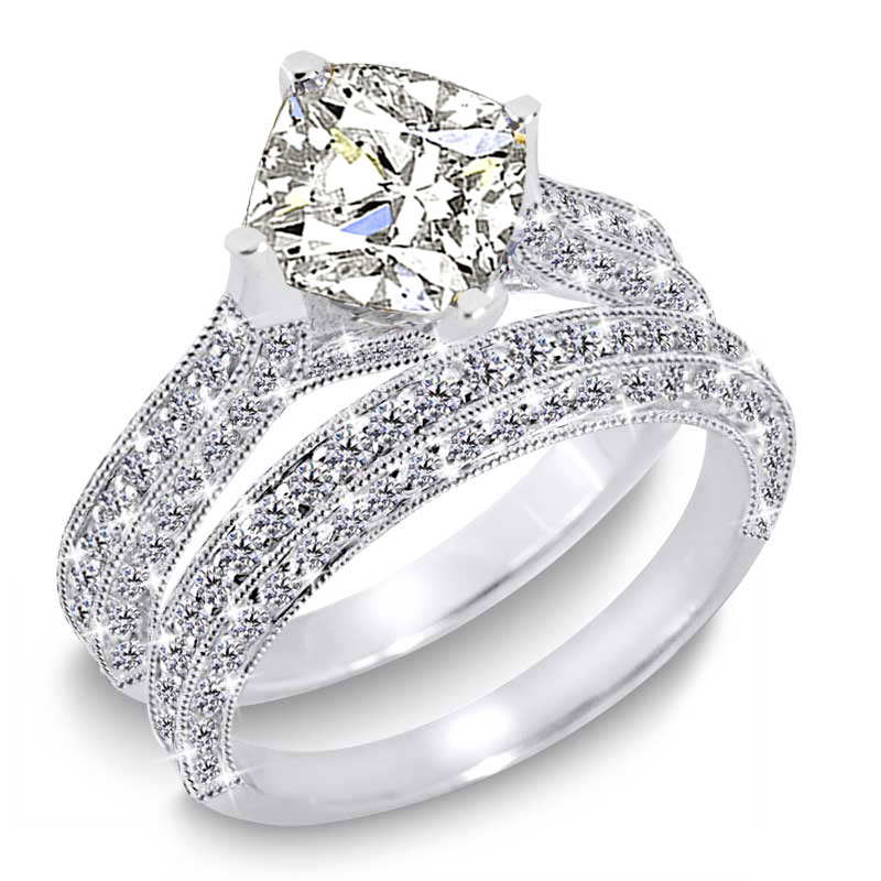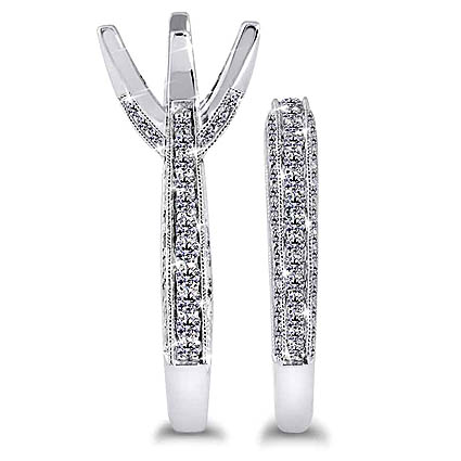 Ring seamlessly converges towards the 4 prongs. Platinum Setting perfect for Round, Asscher, Princess and Cushion Center Stone.