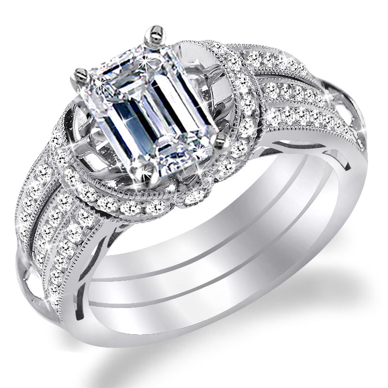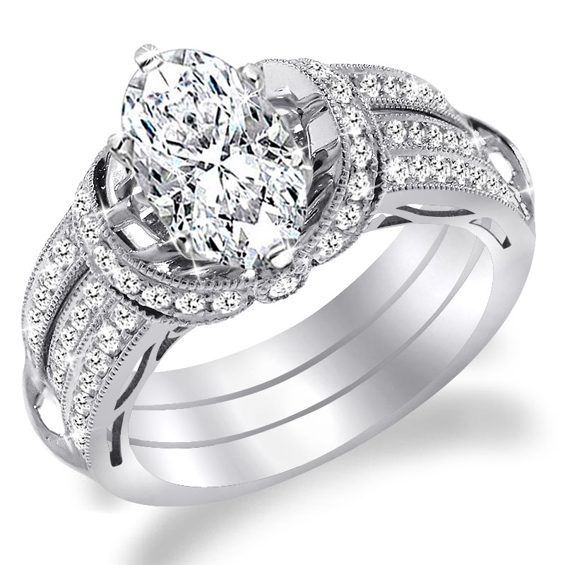 Unique Engagement Ring with 70 accent diamonds on divided shrank. Matching Band interlocks the Engagement ring