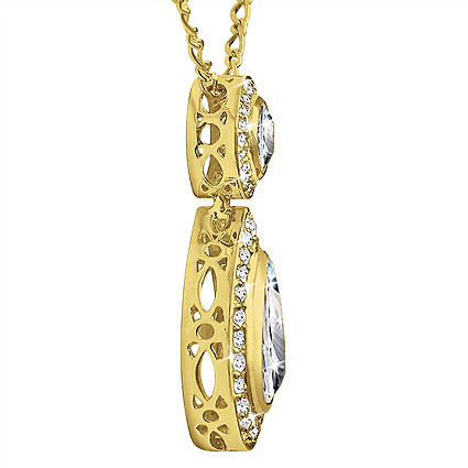 Round center stone is 0.25 Carat. The empty drop center can hold Pear shape Diamond or other pear shape gemstone. Pave diamonds totals to 0.30 carats.