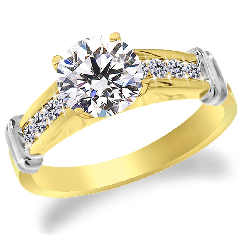 this two tone gold diamond ring has 8 round cut accent diamonds at 0.35 total carat weight.