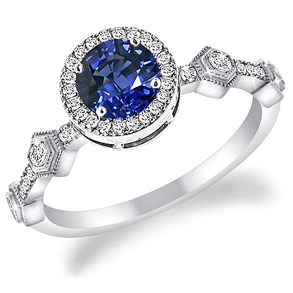 1 Carat Sapphire and Round Diamonds Total to 0.40 Carats.
