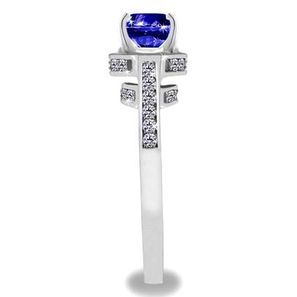 With bezel frame and ring shoulder surrounded by diamonds totaling of 0.65 Ct and a sparkling Round center stone 1 Ct.