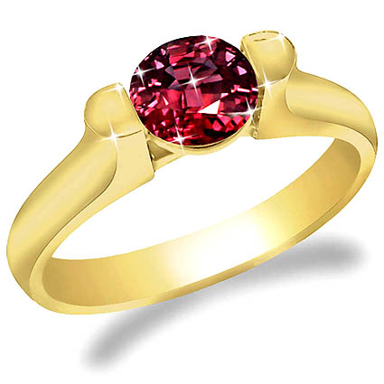 Center setting set on two prongs which are extensions of the shank. A small ring holds the round ruby securely in place.