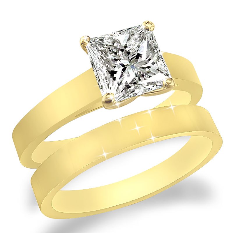 Solitaire Diamond Ring setting and A Matching Plain Band