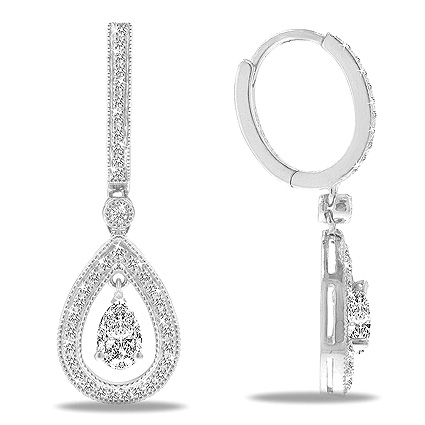 with Pear shape Diamonds center stone 0.80 Carats and 78 diamonds 0.30 Cts in pave settings.