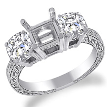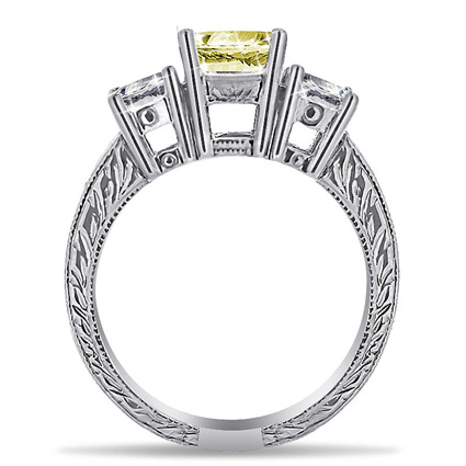 Platinum Setting with 1 Carat Natural Fancy Diamond and 0.65 Carats total of 2 Side Diamonds. Each is held by 4 prong setting.