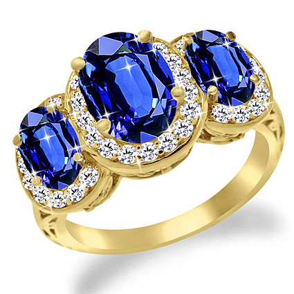 Center is 1 Carat Sapphire and Two Natural Sapphire side gemstones are 0.70 tcw a