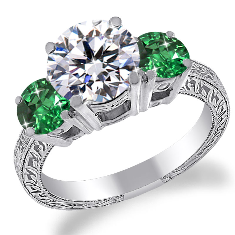 Platinum Setting with 0.65 Carats total of 2 Natural Emerald Gemstone that are held by 4 prong setting.
