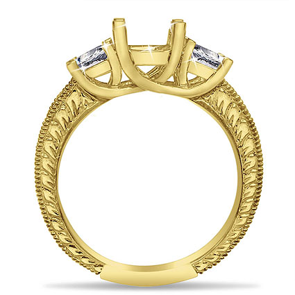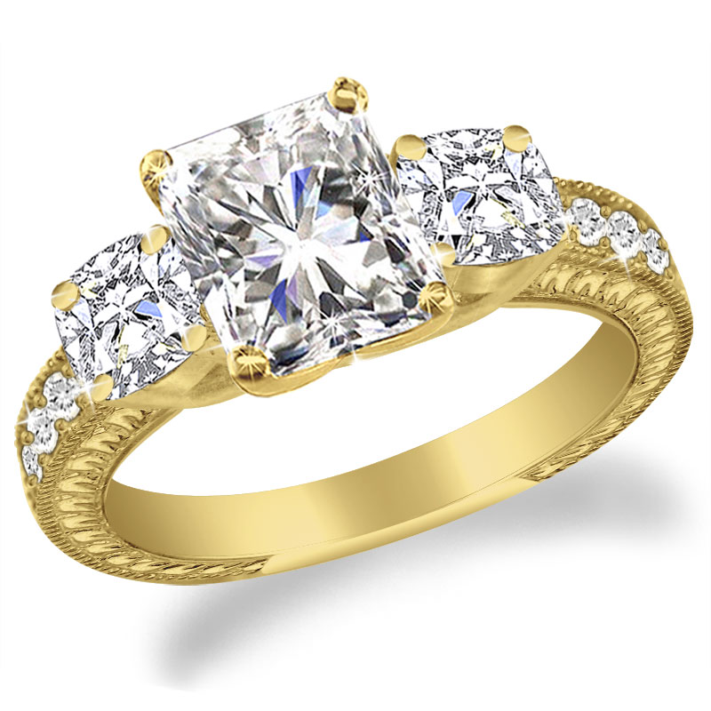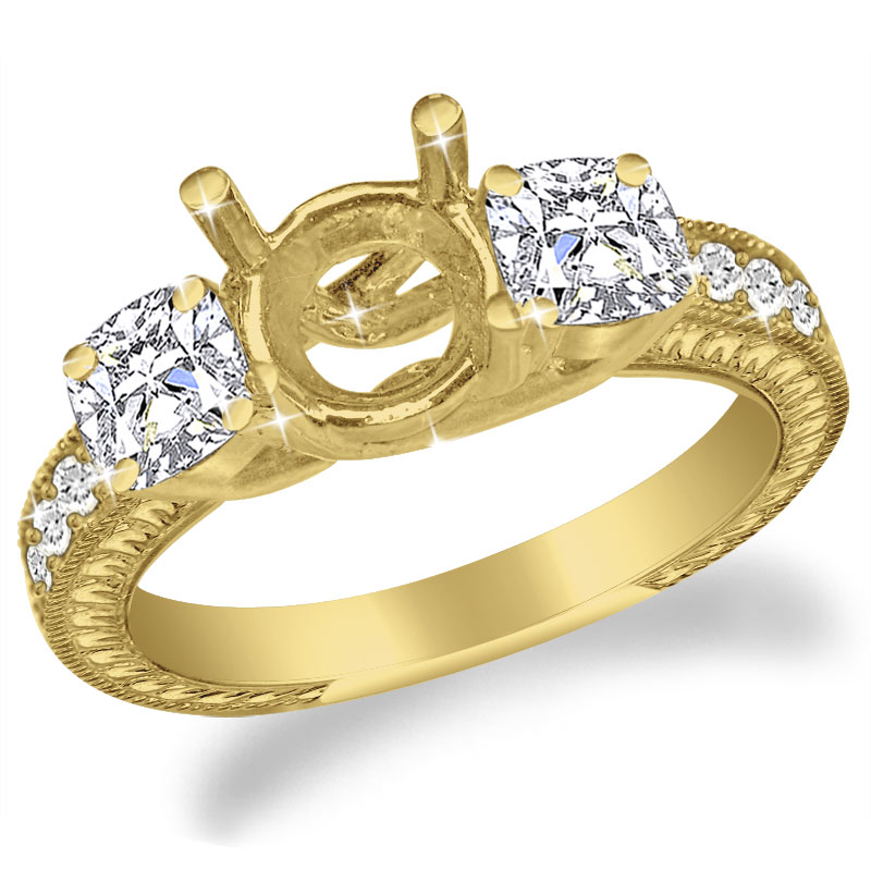 14Kt Gold Ring with 2 eye clean cushion side stones 0.70 Carat. Accent round diamonds totals to 0.20 carats.