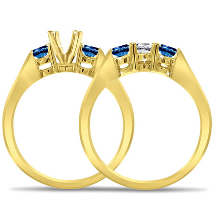 With a perfect matching band with 0.15 Ct diamond and 2 Sapphires 0.30 tcw in 14K gold.