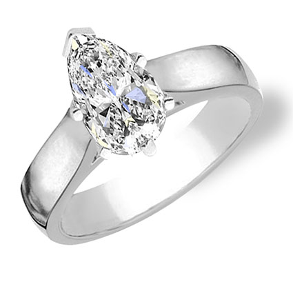 Pear cut Diamond Ring in 14K white gold 1.75 - 2.75 mm band thickness