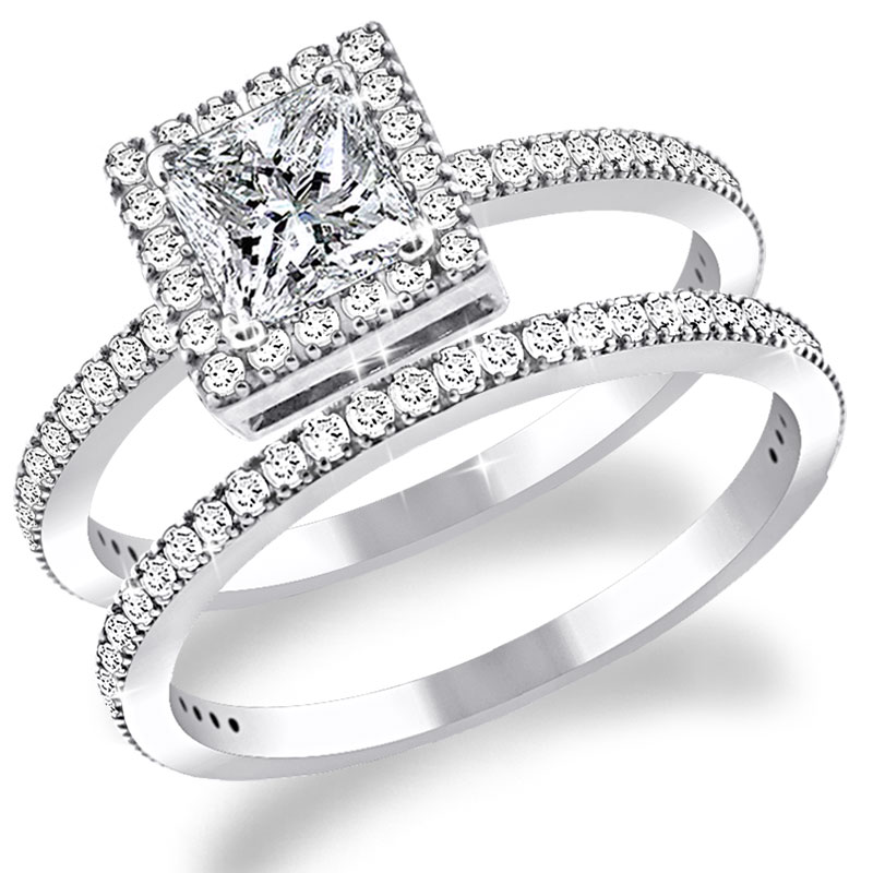 Custom Design Matching Wedding Set ~ 1 Carat Micro Pave Set Diamonds. Both Ring