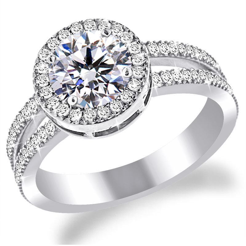 Split Shank Micro Pave Diamond Engagement Ring. ~Half Eternity Diamonds total to